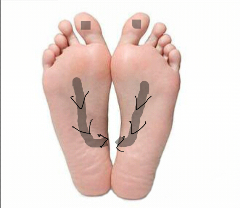 Cara ini memang kurang masuk akal, tetapi terkadang bekerja dengan baik dan efektif menyembuhkan penyakit anyang-ayangan dengan tidak masuk akal pula. Salah satunya dengan memijat dan menekan beberapa titik di kaki, jempol, dan bagian bawah telapak kaki. Cara ini mungkin bagian dari refleksiologi. Bisa jadi titik-titik di kaki, jempol kaki dan bagian bawah telapak kaki terdapat syaraf-syaraf yang terhubung ke saluran kemih yang dapat merangsang syaraf-syaraf di kandung kemih.